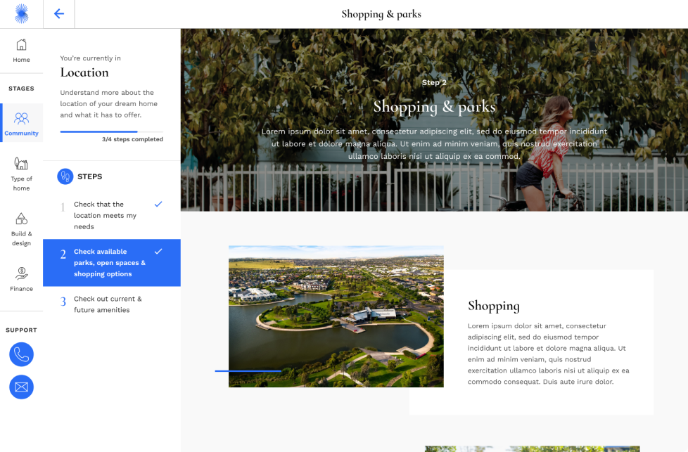 We created a digital hub that helped customers with their home-buying journey. After a structured UX research phase, we designed and built an experience that was carefully curated into key “steps” customers could check off in their buying journey. In the background we developed a scoring methodology to help the business qualify leads.